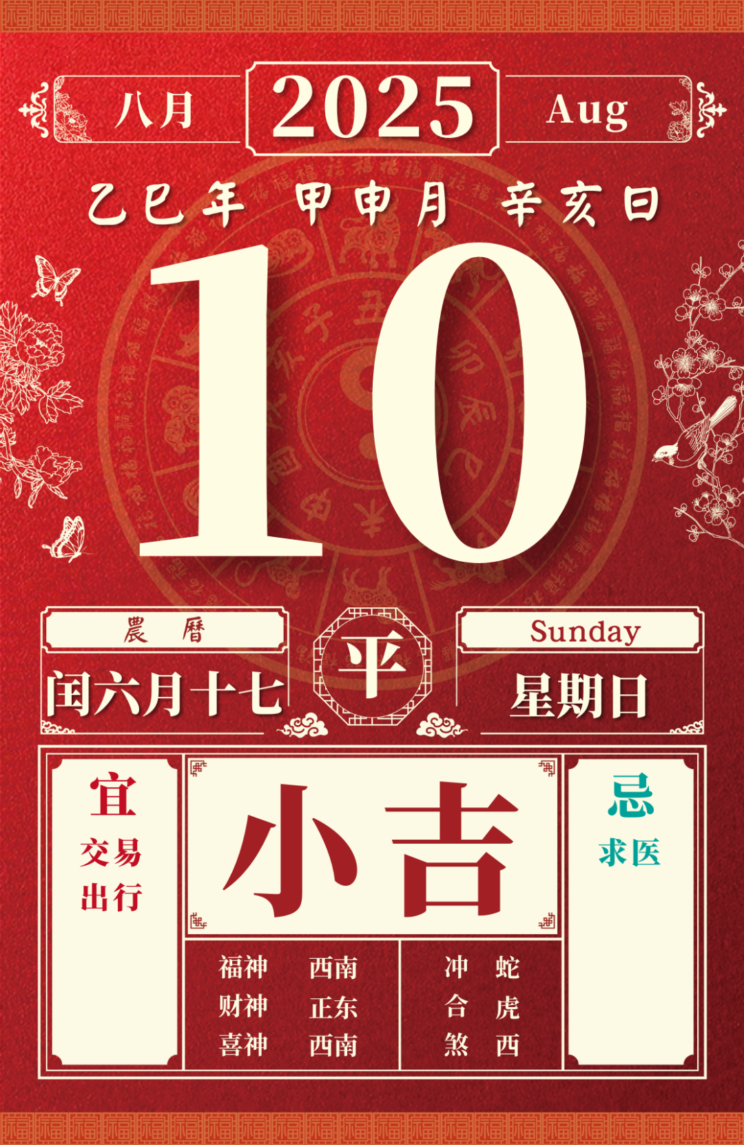 旺运方位:此日利于朝东南方出行;南方不宜。