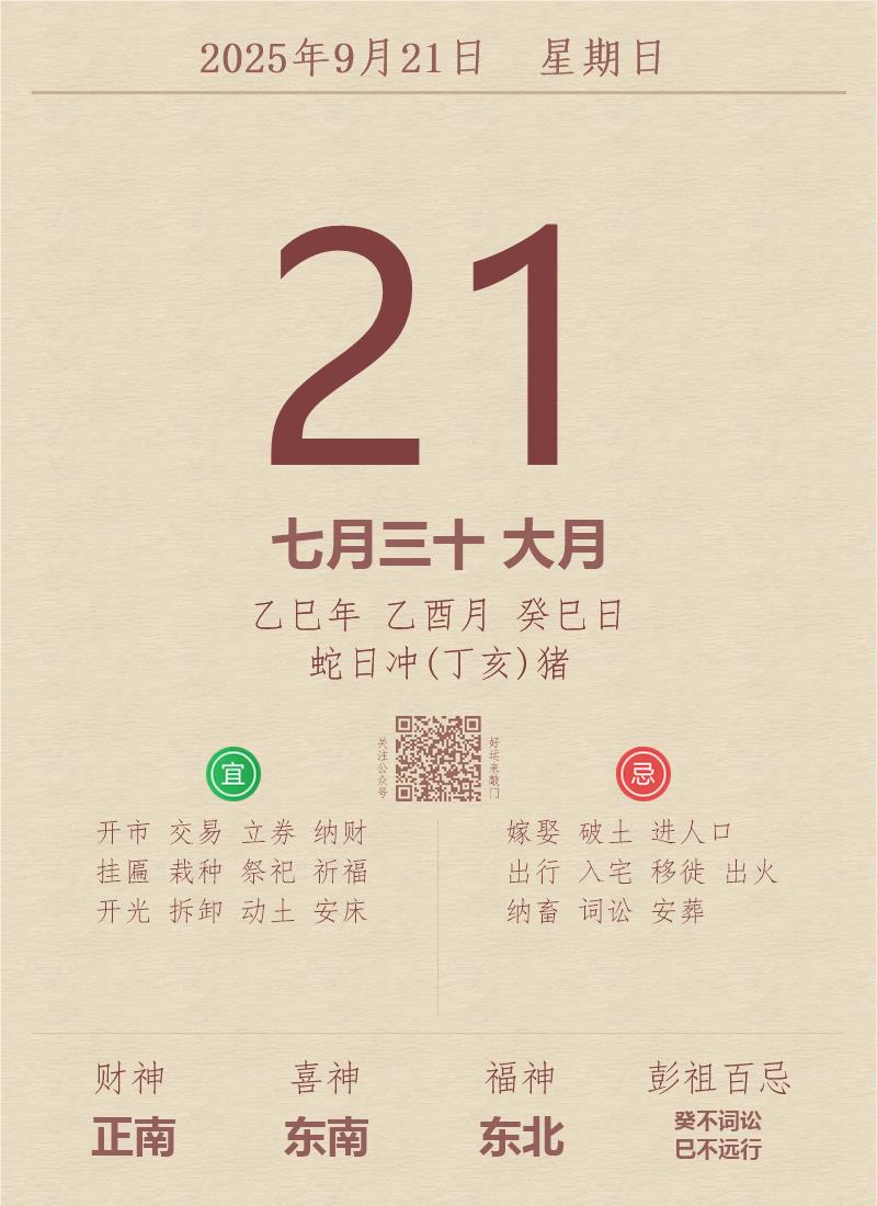 公历:2025年9月21日 星期日