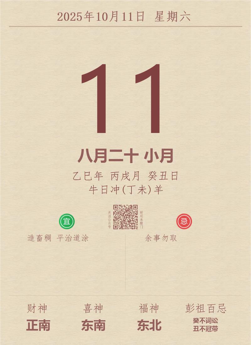 公历:2025年10月11日 星期六