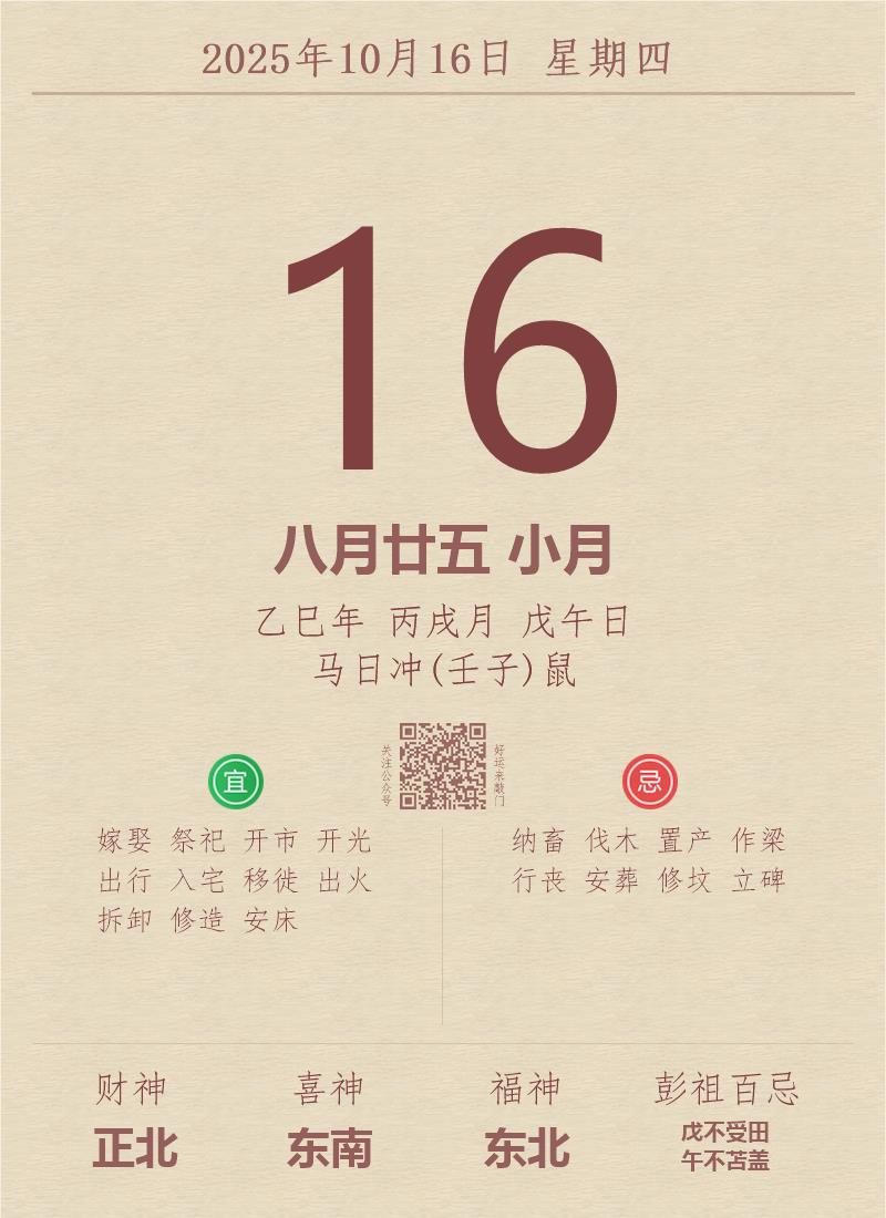 公历:2025年10月16日 星期四