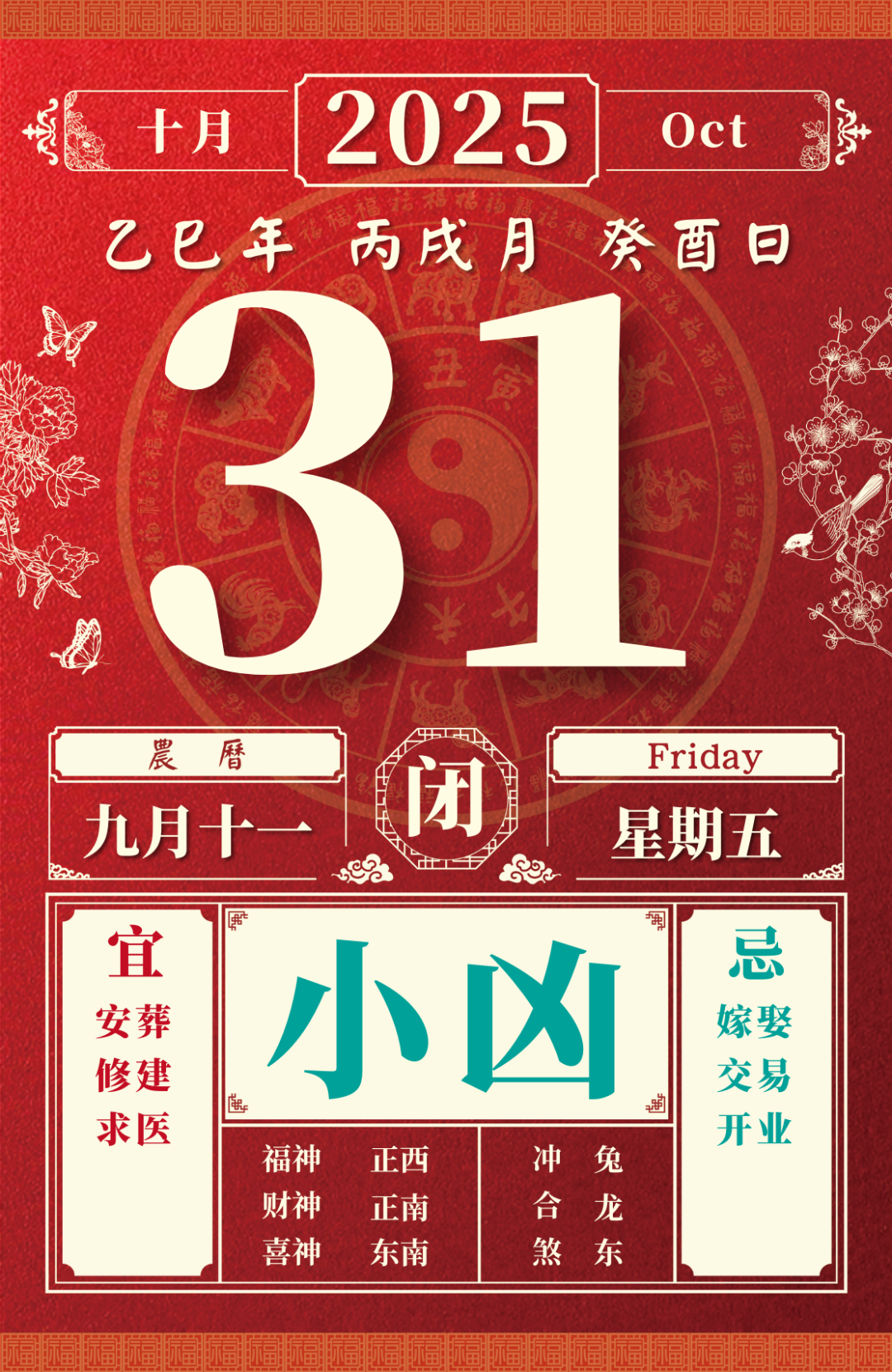闭者,坚固之义也。最宜埋葬生得富贵大喜收金藏宝,不被盗贼偷劫。造六畜栏枋合帐帷、塞路断蚁鼠穴修筑墙垣作厕等。忌上任经商移出诸事,又忌架造屋宇。