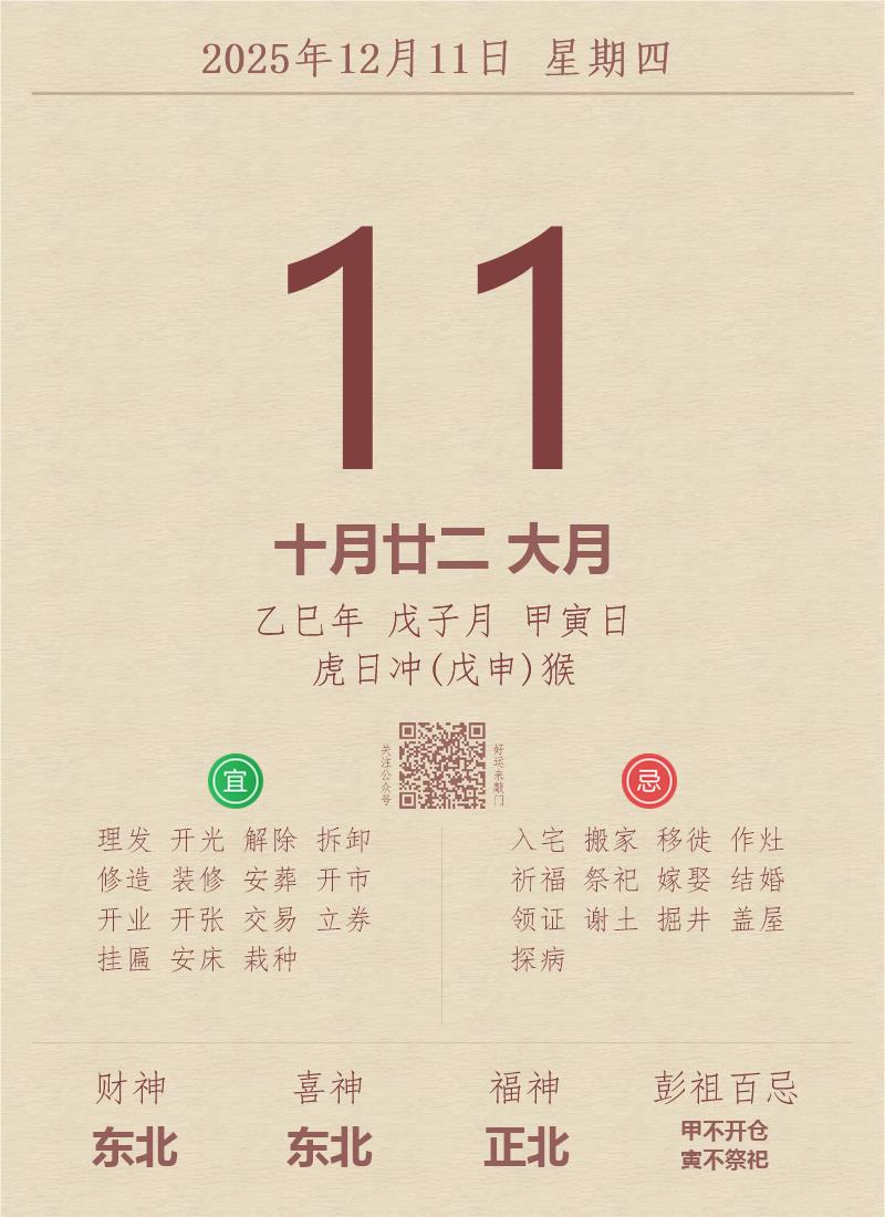 公历:2025年12月11日 星期四