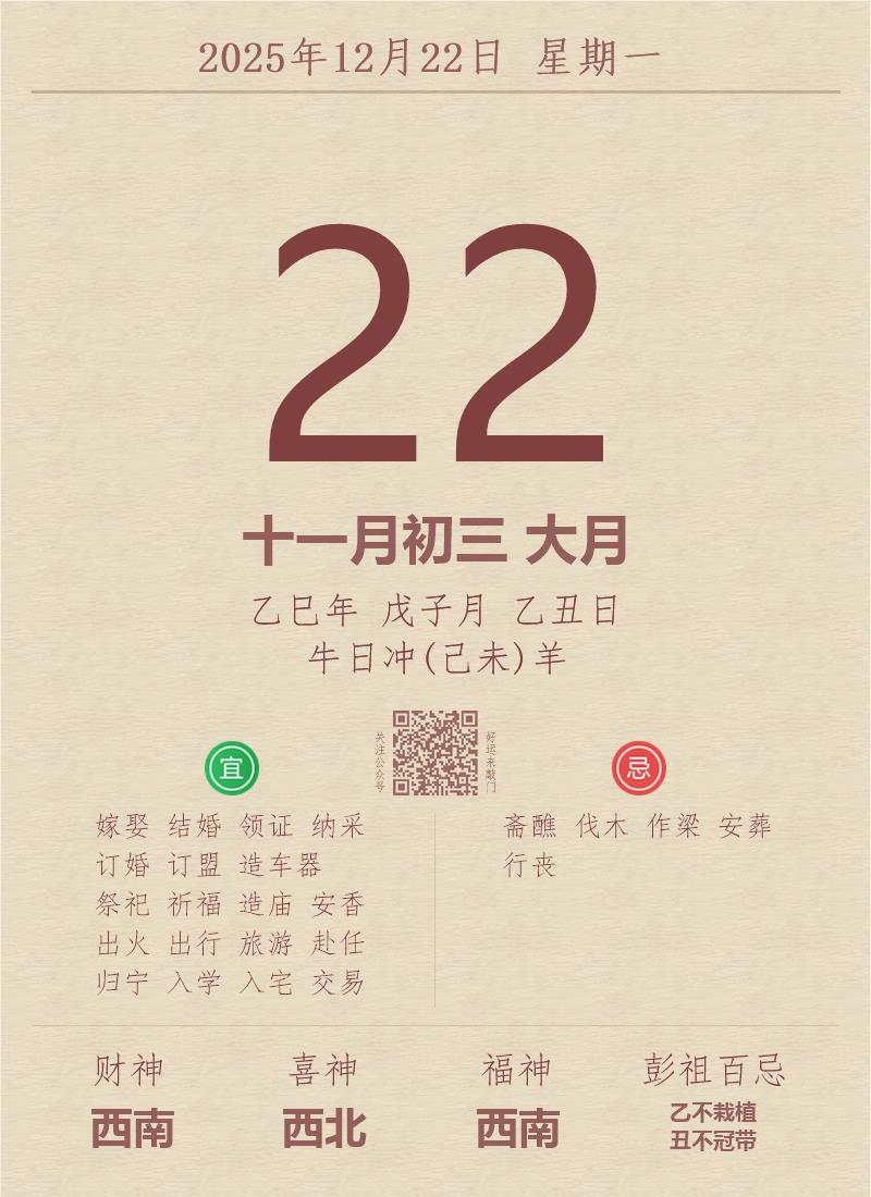 时宜:祈福 求嗣 订婚 嫁娶 求财 开市 交易 安床 修造 盖屋 移徙