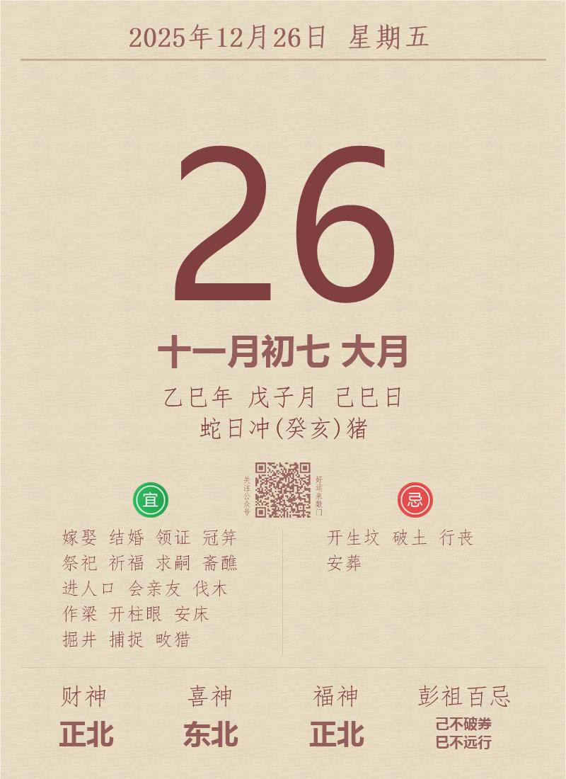 公历:2025年12月26日 星期五
