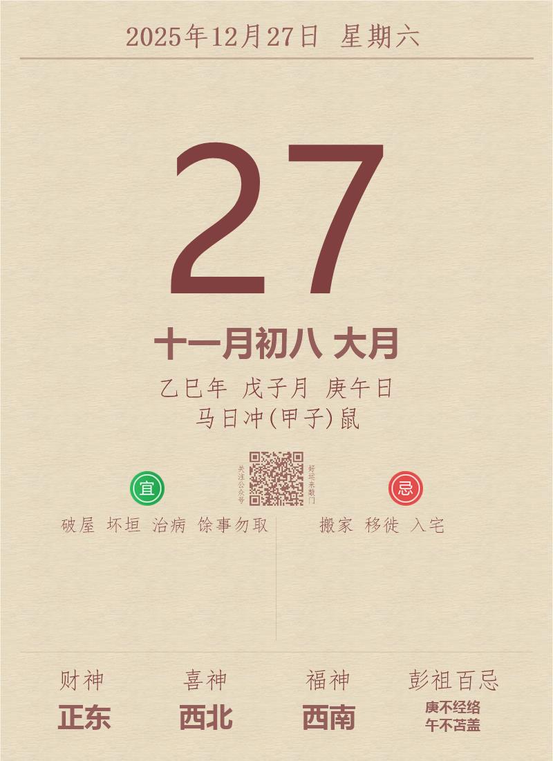 公历:2025年12月27日 星期六